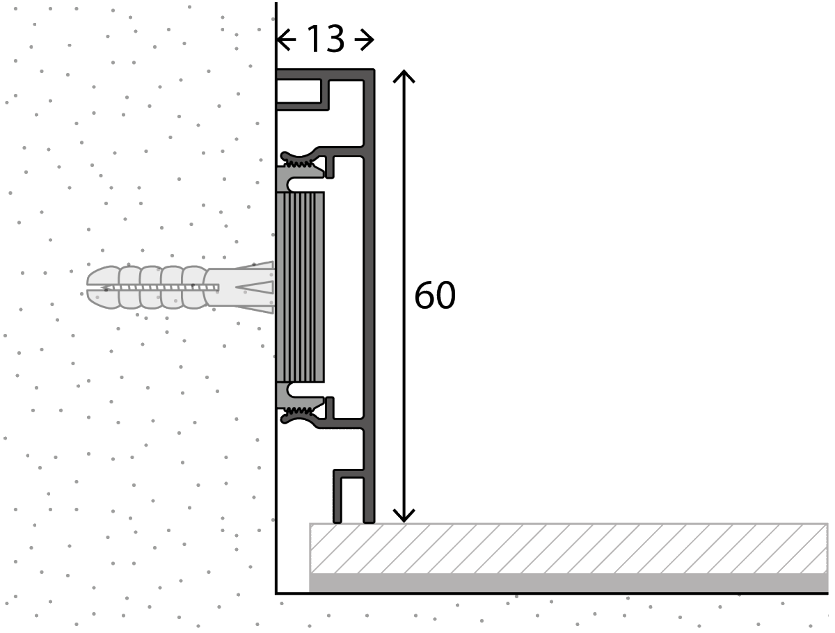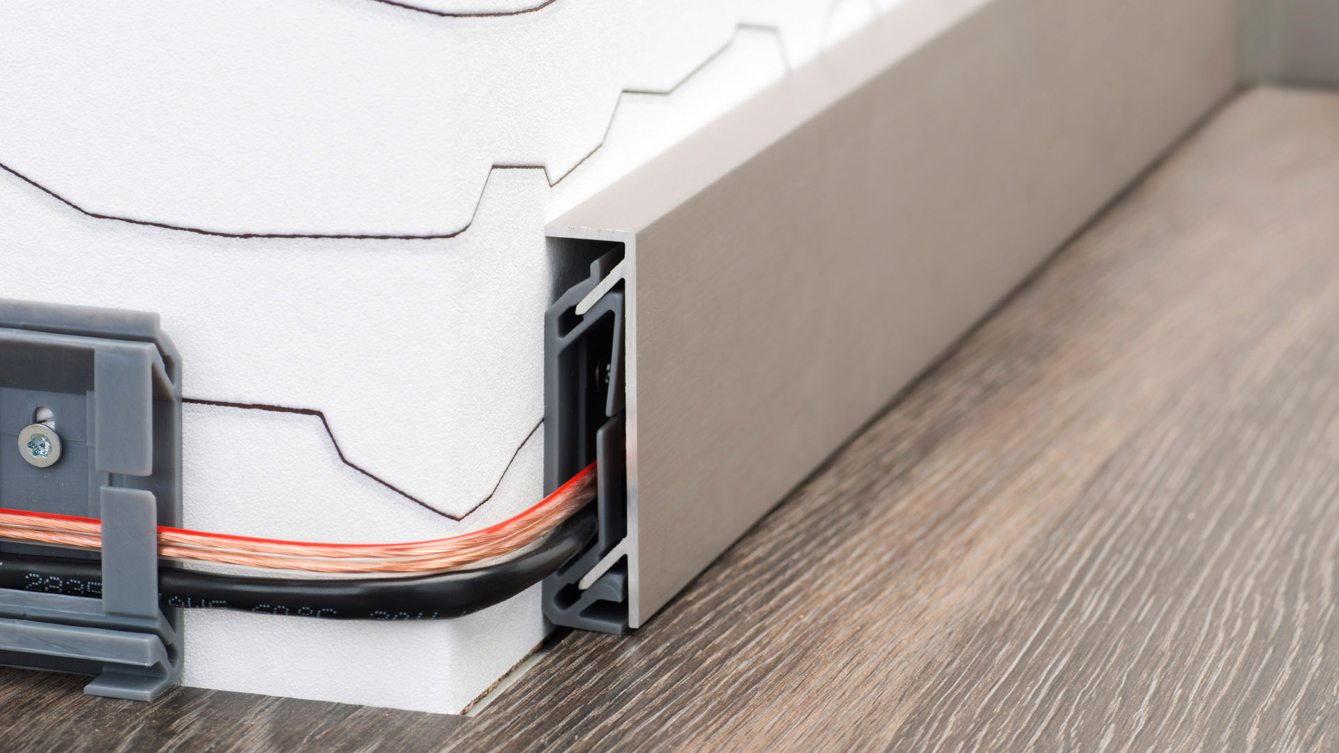 Montage: Die Aluminium-Sockelleisten werden durch ein Clip-System, verdeckt an der Wand befestigt.