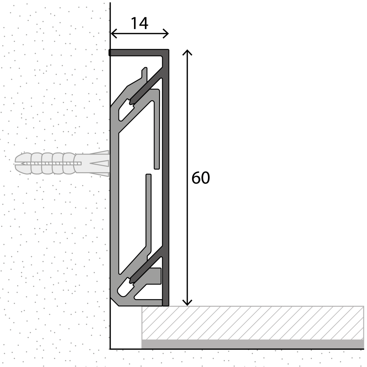 "Cultus45" Aluminium-Sockelleiste 60 x 14 mm
