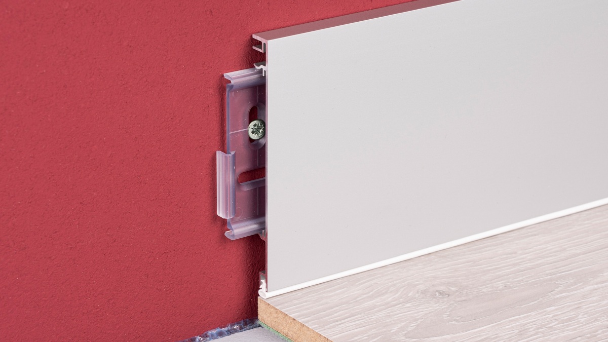 Die Sockelleisten haben auf der Rückseite ein integriertes Clip-System. Durch den praktischen Clip ist eine schnelle und sichere Montage an der Wand garantiert. Zudem erhalten Sie eine perfekte Optik dank vedeckter Clips-Befestigung.