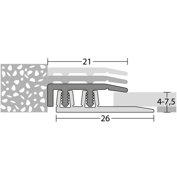 Unsere hochwertigen Übergangsprofile aus Aluminium sind speziell für moderne Designbeläge und LVT-Böden entwickelt. Dank ihres variablen Bodenaufbaus von 4 bis 7,5 mm eignen sie sich ideal für alle schwimmend verlegten Beläge wie Vinyl oder Design-Planken.