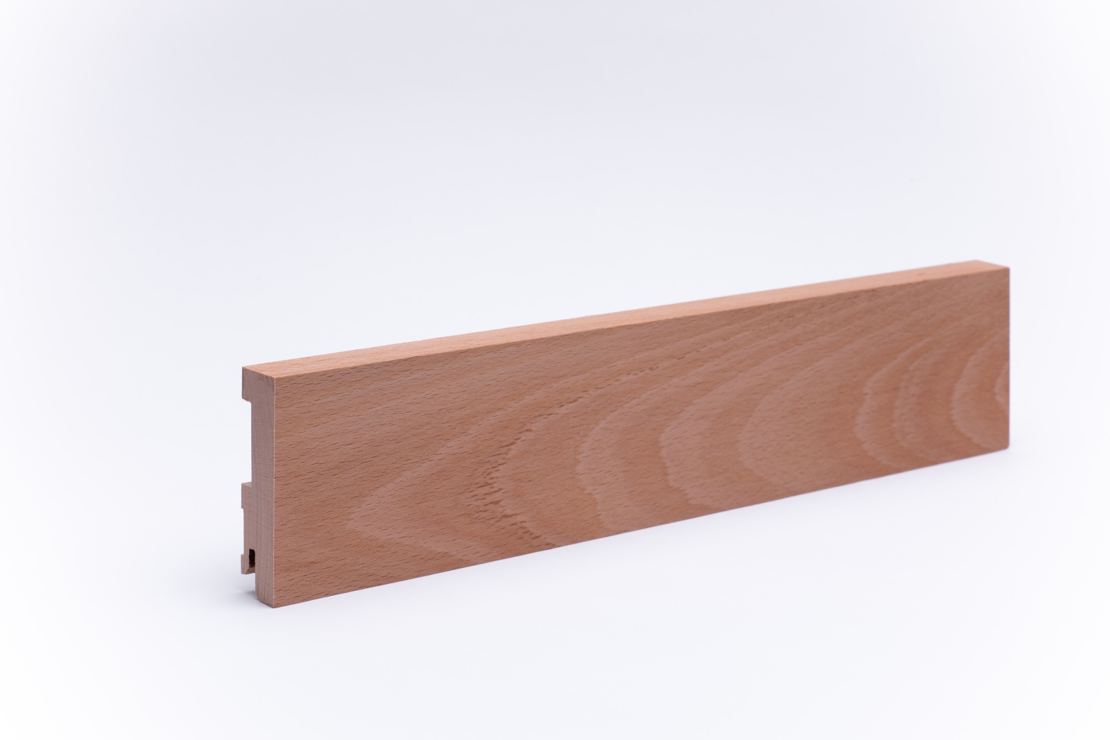 Unsere Sockelleisten sind aus einem Stück massivem Buchenholz, wie der Stamm gewachsen ist, gefertigt. Durch die schöne gleichmäßige Maserung und Struktur des Holzes entsteht ein sehr natürliches und harmonisches Oberflächenbild. Das Buchenholz ist von Natur aus extrem hart, widerstandsfähig und damit sehr haltbar.