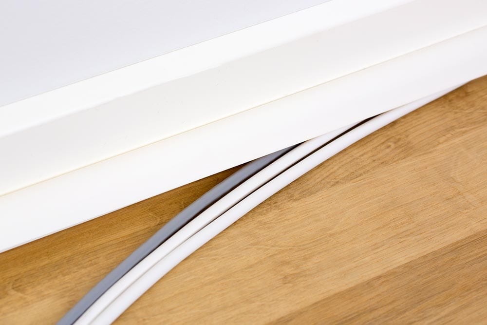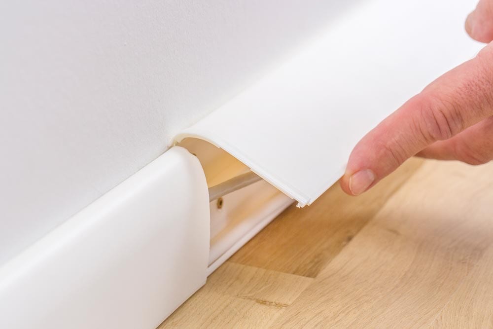 Durch das praktische ClipSystem lassen sich die Sockelleisten schnell und einfach an der Wand montieren. Der integrierte Kabelkanal bietet zusätzlich die Möglichkeit der versteckten Kabelführung hinter der Leiste.