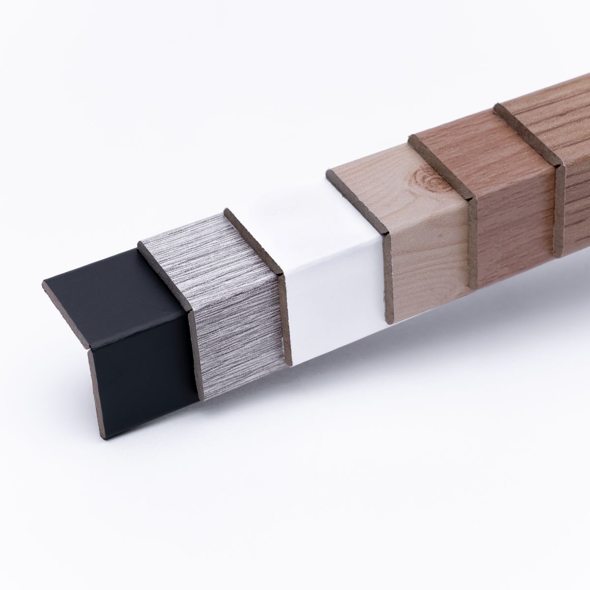 Knickleiste/Abschlusswinkel auf MDF-Träger in Holzoptik Eiche Weiß