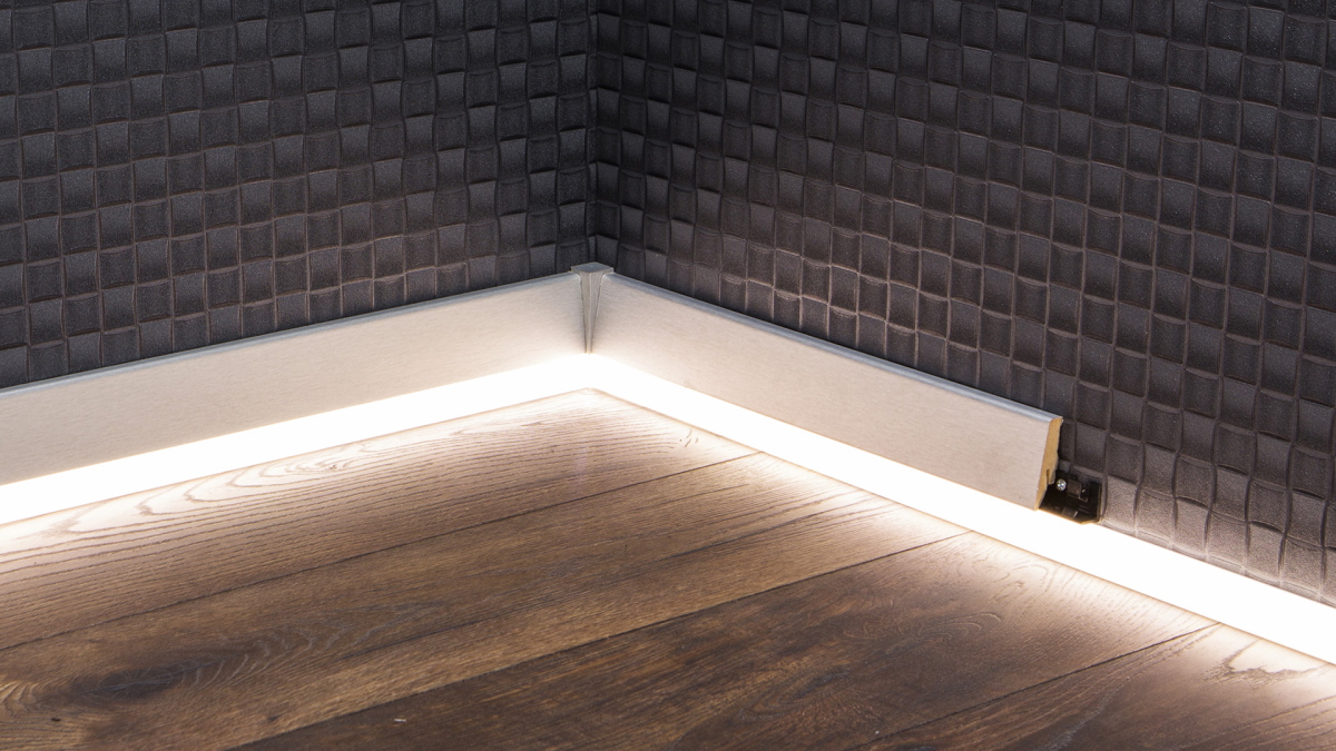 Im Boden- und Sockelbereich lässt sich in Verbindung mit selbstklebenden LED-Bändern eine ideale Nacht- oder Notbeleuchtung schaffen.