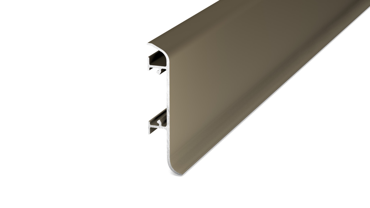 Die Sockelleiste wird durch ein Clipsystem befestigt, mit der Möglichkeit der unsichtbaren Kabelverlegung hinter der Leiste.