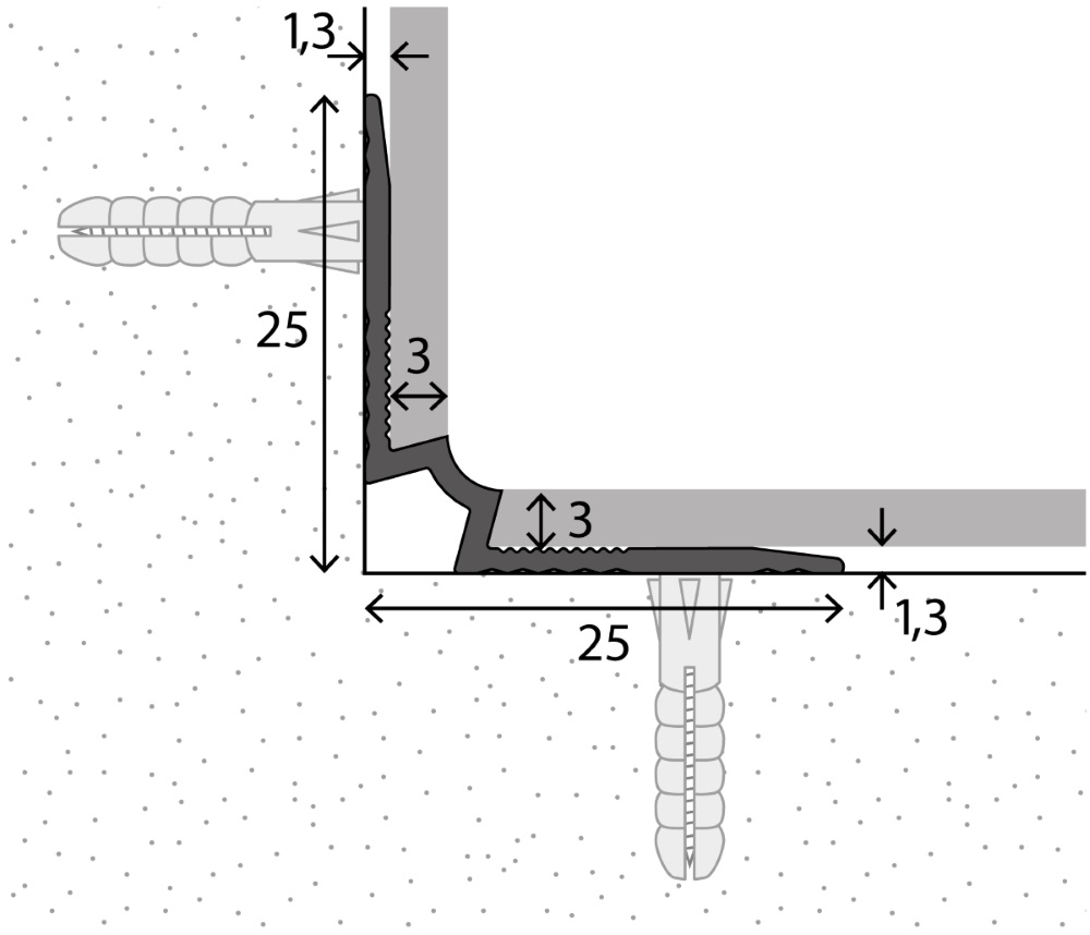 Treppenkanten für Designbeläge bis 5 mm, für die vollflächige Verlegung von Designbelägen auf Treppenstufen. Die darauf abgestimmten Innenwinkel schützen die Kanten des Belags auch in der Innenecke zwischen Tritt- und Setzstufe.