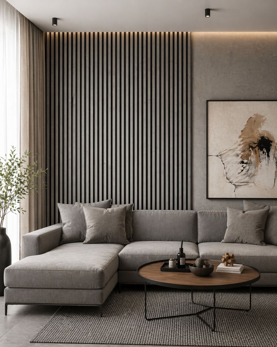 - Moderne Lamellenwand-Optik für mehr Tiefe und Struktur