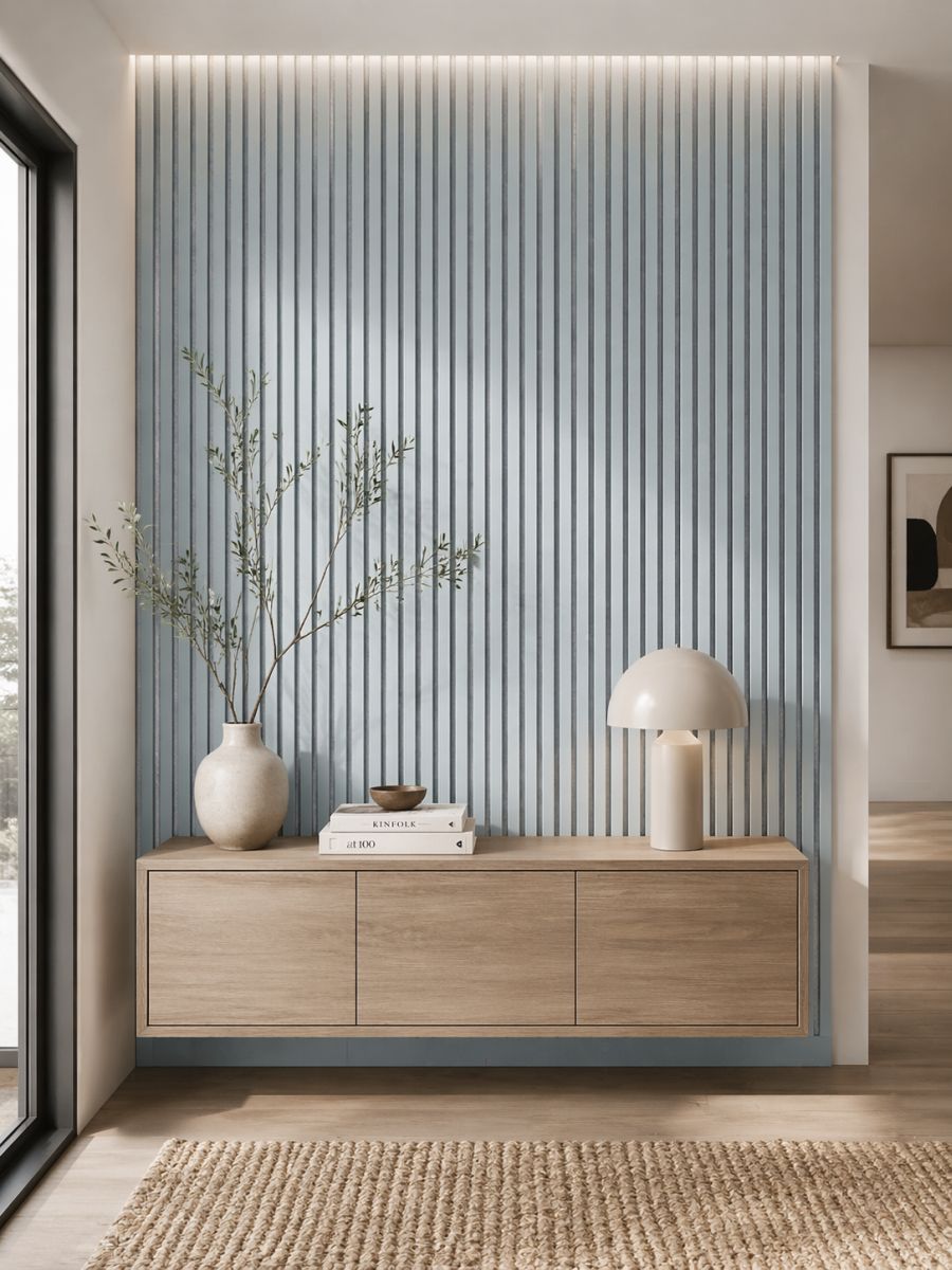 - Moderne Lamellenwand-Optik für mehr Tiefe und Struktur