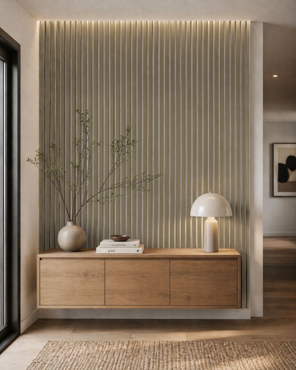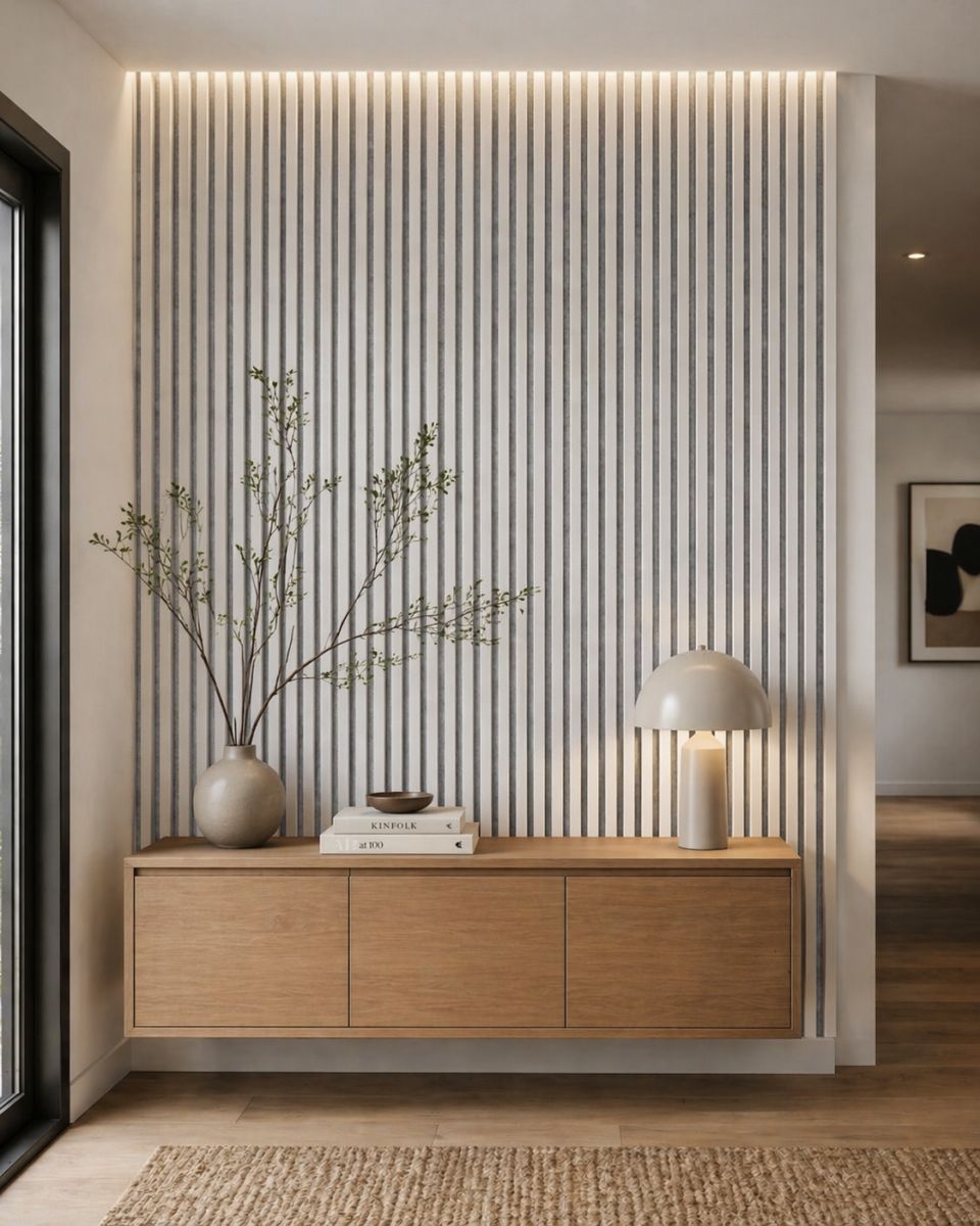 - Moderne Lamellenwand-Optik für mehr Tiefe und Struktur