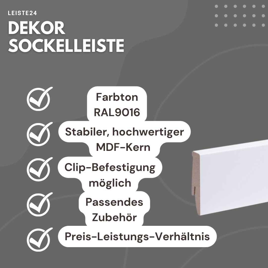 - Das Set beeinhaltet: 10 Stück Sockelleisten 60mm weiß
