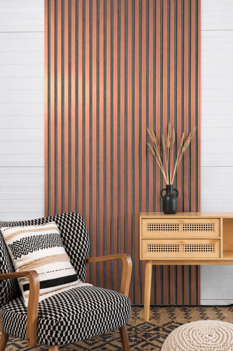 - Lamellen aus MDF mit Qualitäts-Dekorkaschierung in Kupfer