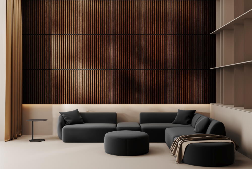 - Akustikpaneele mit Schattenfuge - Lamellenwand als Wand- und Deckenverkleidung