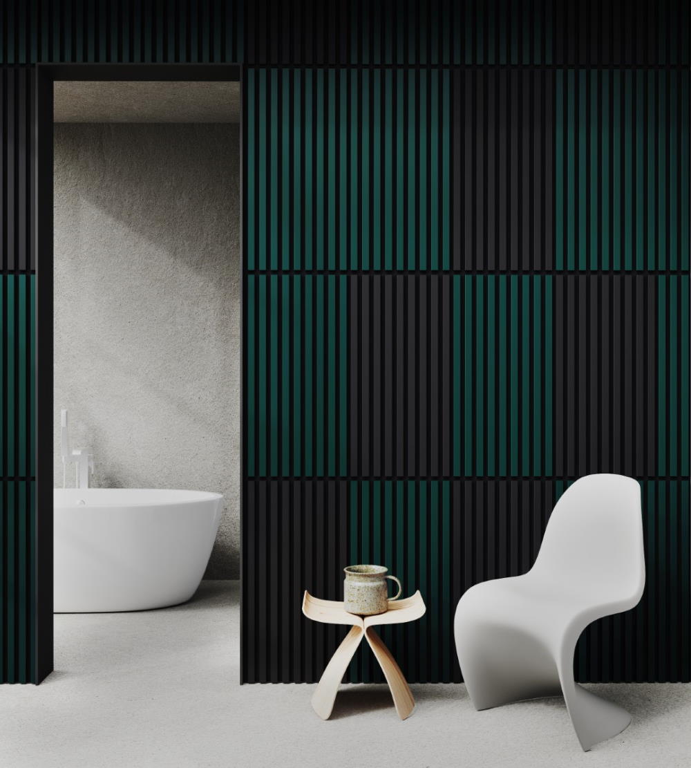 - Akustikpaneele mit Schattenfuge - Lamellenwand als Wand- und Deckenverkleidung