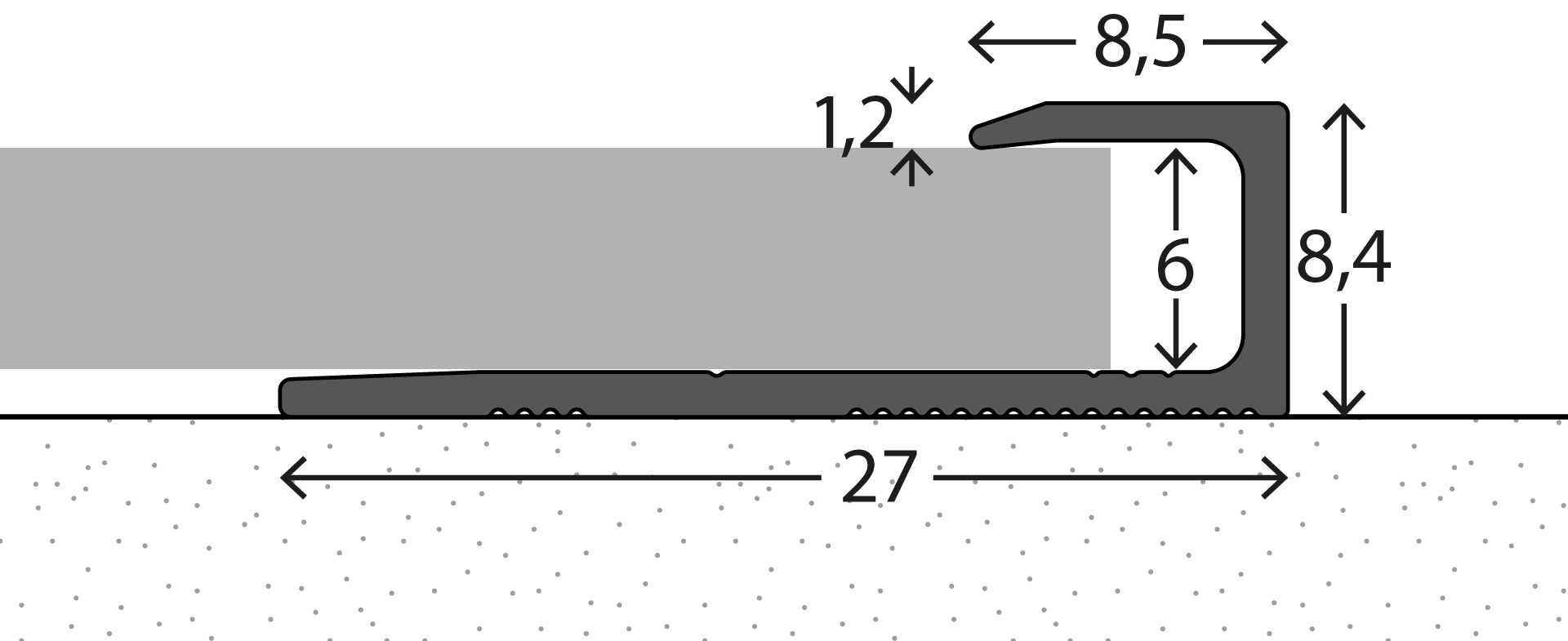 Alu-Abschlussprofil Nr. 144 27 x 8,4 mm in Edelstahl gebürstet