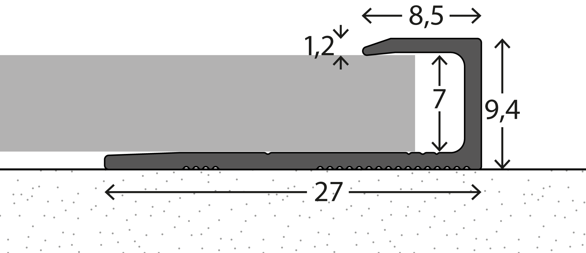 Mit einer Länge von 270 cm lässt sich das Profil flexibel einsetzen ideal für Designbeläge, LVT Click und massive Wandpaneele. Es wird mittels Klebetechnik befestigt und ist ungelochtes Profil, das maximale Stabilität bietet.