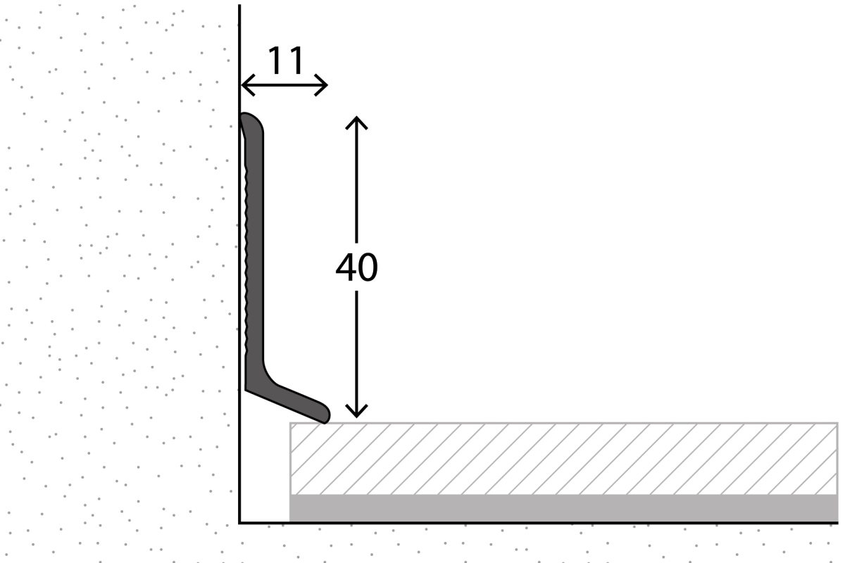 Einschub-Sockelleiste aus Aluminium für Designböden. Mit dieser Sockelleiste, schaffen Sie einen eleganten und ansprechend aussehenden Übergang zwischen Wand und Boden. Geeignet für den Einschub von Designbelägen mit der Stärke von 2 bis 3mm
