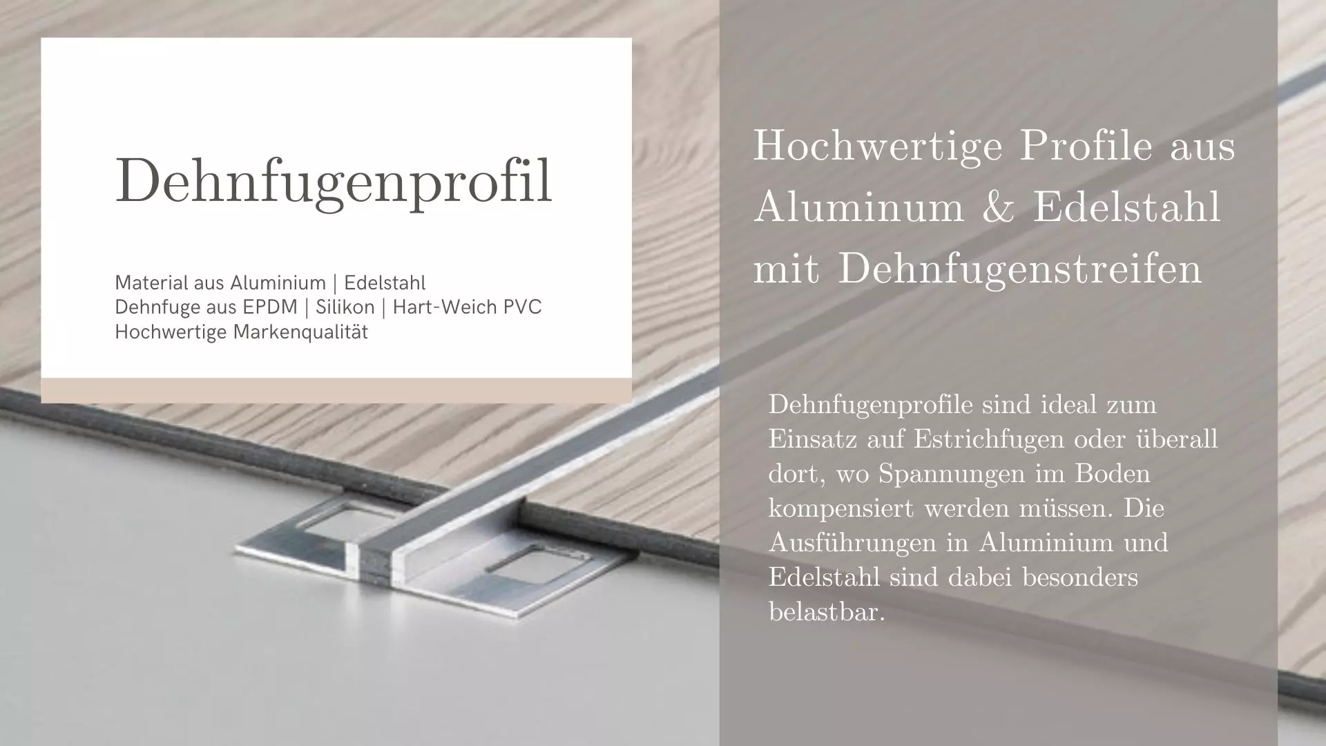 Unsere Dehnungsfugenprofile lassen sich unkompliziert installieren und sorgen für ein sauberes, professionelles Erscheinungsbild. Die Profile gewährleisten eine ästhetische und funktionale Lösung für alle Fugenanforderungen und sind ideal für Neubauten sowie Renovierungen geeignet. Entdecken Sie jetzt unsere hochwertigen Dehnungsfugen und schützen Sie Ihre Boden- und Wandbeläge vor Schäden.