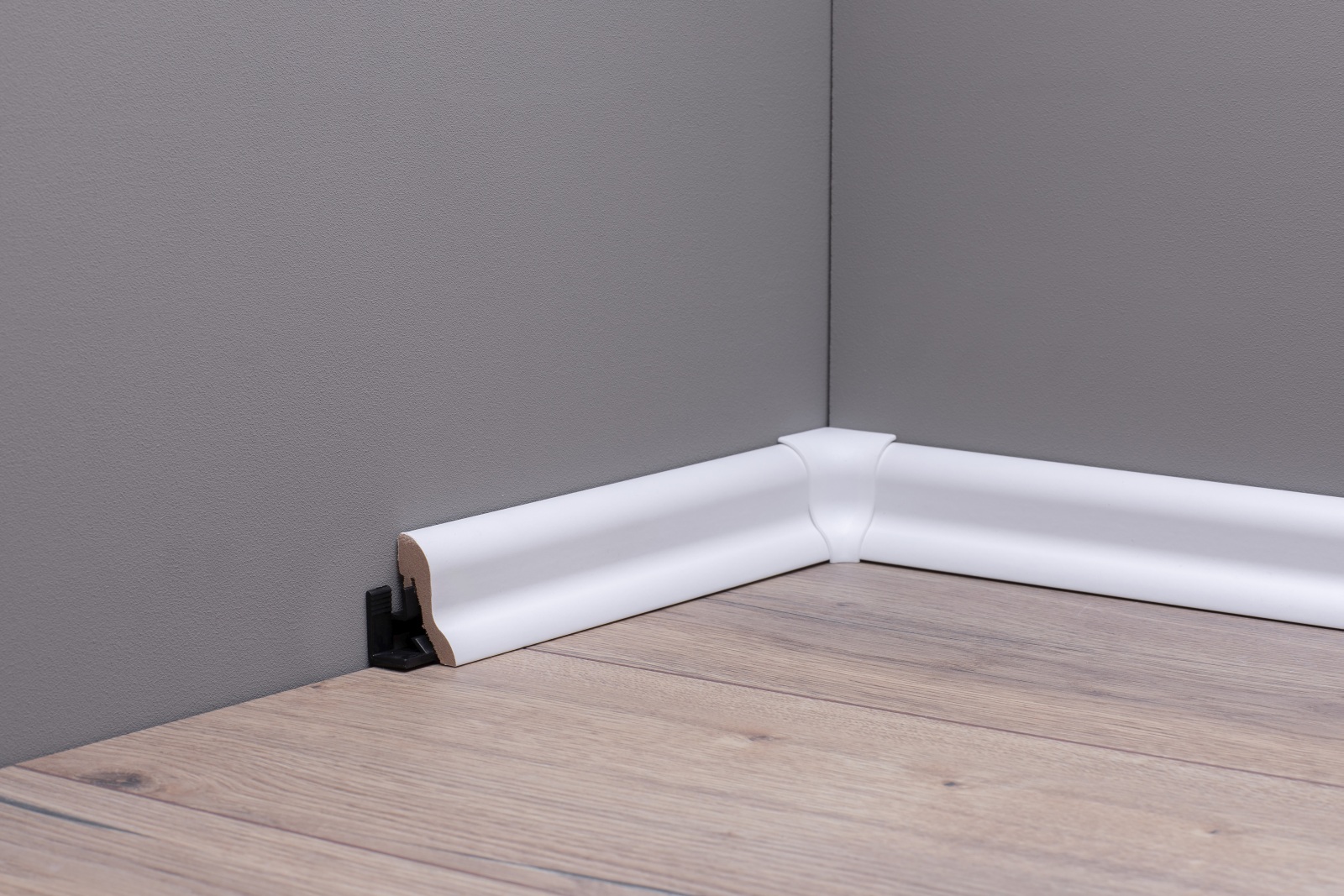 Durch das praktische ClipSystem lassen sich die Sockelleisten problemlos an der Wand montieren.