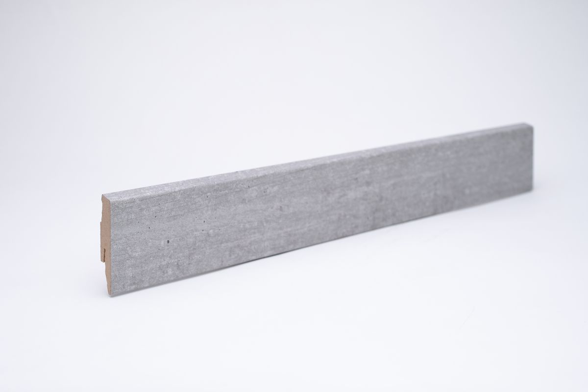 Unsere betongraue Dekor-Sockelleiste 60mm, besticht durch ihr schlichtes und zeitloses Design.