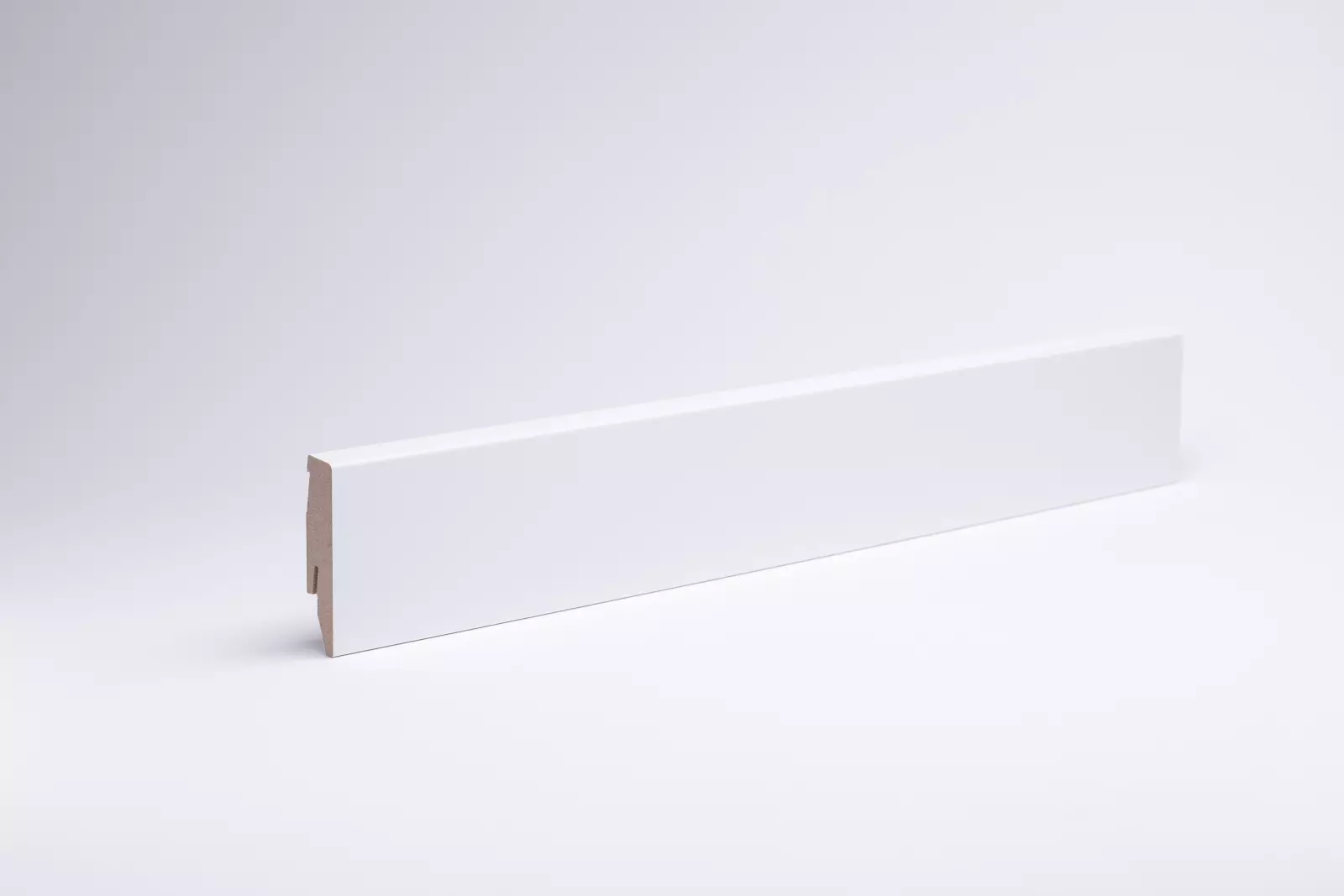 Die Fußleiste hat einen MDF-Kern (MDF-mitteldichte Holzfaserplatte). Dieser gibt der Fußleiste ausreichend Flexibilität sowie Stabilität.