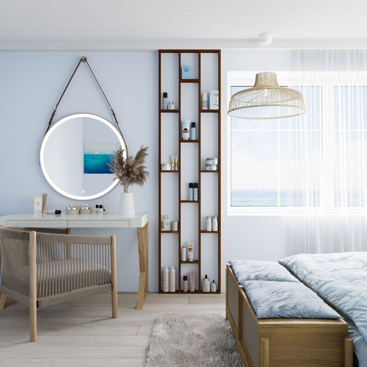 Ob als dekoratives Regal oder zur klaren Abtrennung von Bereichen: Dieser moderne Raumteiler aus Holzoptik bietet maximale Flexibilität und fügt sich harmonisch in jede Einrichtung ein.