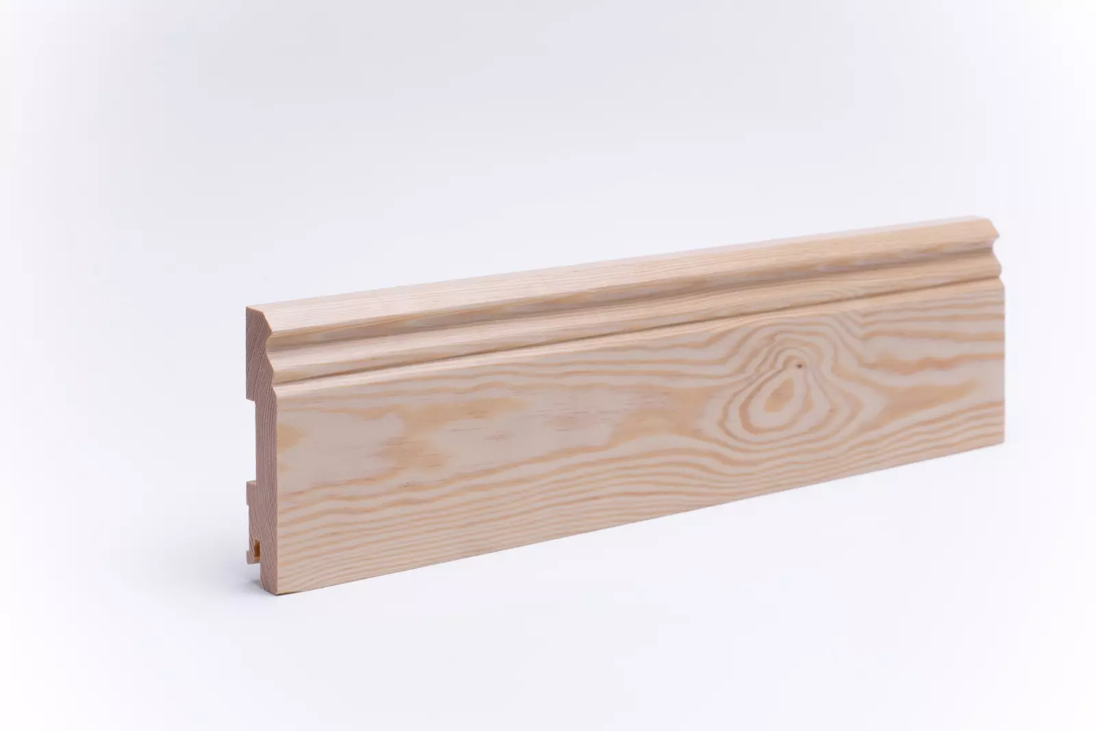 Unsere hochwertigen Sockelleisten Berliner Profil 100 mm fertigen wir aus massivem Kiefernholz. Damit verbindet diese Massivholzleiste Natürlichkeit mit höchster Stabilität, für einen perfekten Übergang zwischen Wand und Boden, sowie ein harmonisches Raumbild.