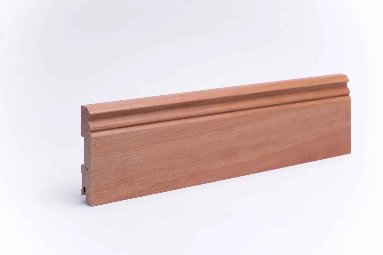 Unsere hochwertigen Sockelleisten Berliner Profil 100 mm fertigen wir aus massivem Buchenholz. Damit verbindet diese Massivholzleiste Natürlichkeit mit höchster Stabilität, für einen perfekten Übergang zwischen Wand und Boden, sowie ein harmonisches Raumbild.