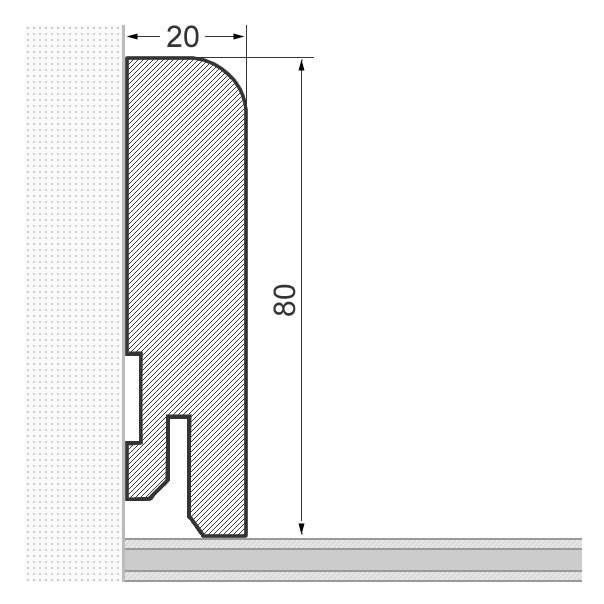 - Abmessung: 80 x 20 x 2.400 mm
