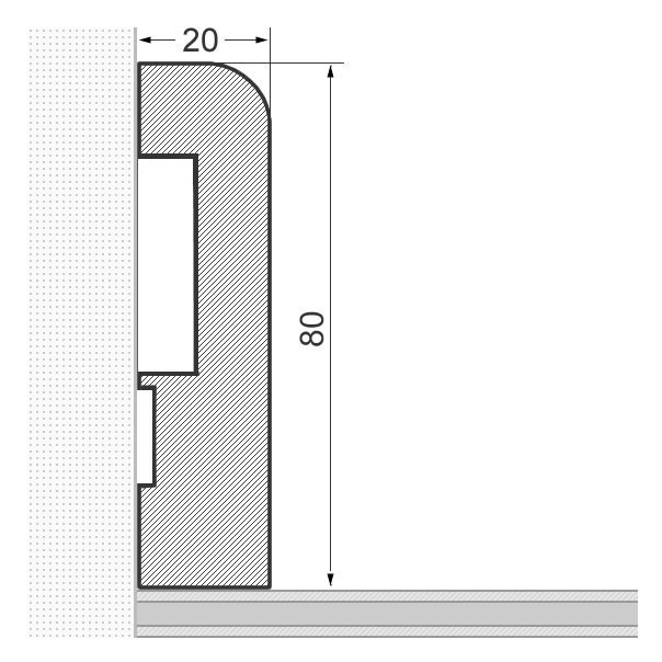 - Abmessung: 80 x 20 x 2.400 mm