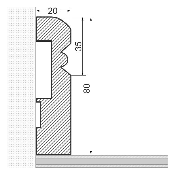 - Abmessung: 80 x 20 x 2.400 mm