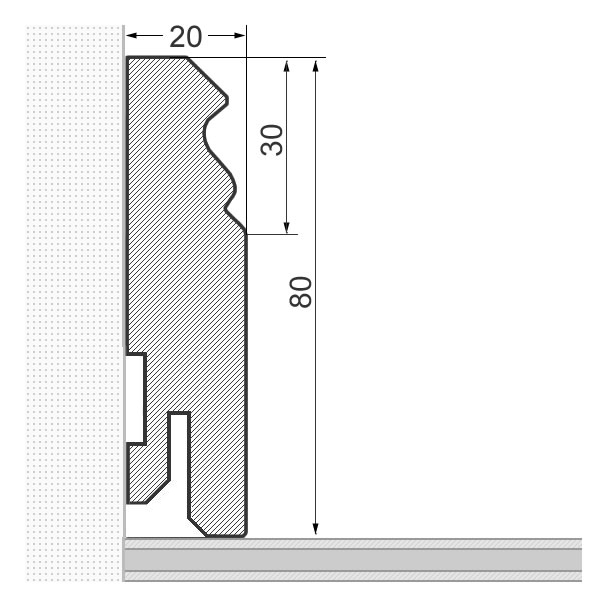 - Abmessung: 80 x 20 x 2.400 mm