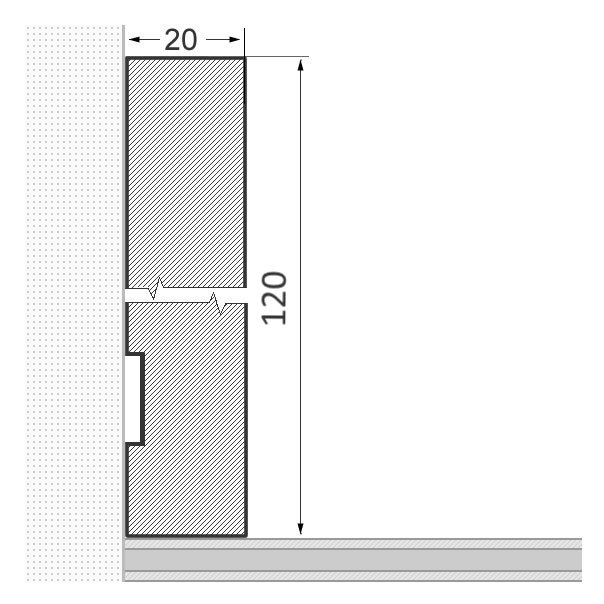 - Abmessung: 120 x 20 x 2.400 mm