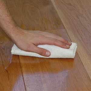 Im Möbelbereich: Öl mit Flachpinsel/Flächenstreicher in Maserrichtung gleichmäßig dünn auftragen. Nach 30 Minuten Einwirkzeit in der Nassphase mit beigem Pad einmassieren, bis die Fläche gleichmäßig matt erscheint. Eventuell überschüssiges Öl mit einem Baumwolltuch/Ölsaugtuch abnehmen. Alternativ kann das Öl auch mit einem getränkten, feinen Schleifvlies ins Holz eingeschliffen werden. Nach kurzer Einwirkzeit eventuell überschüssiges Öl mit einem Baumwolltuch/Ölsaugtuch abnehmen. Die Fläche sollte gleichmäßig matt erscheinen.
