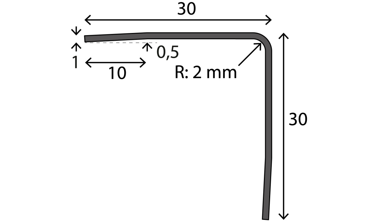 Eckschutzwinkel in Edelstahl, Dreifach gekantet