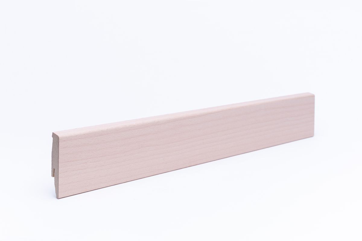 Die Sockelleiste ist mit Echtholz in Buche furniert. Dadurch erhält die sie eine natürliche Buche Optik und Holzstruktur, sowie eine kratzfeste Oberfläche. Zudem sind unsere Leisten leichter und flexibler als Furnier-Sockelleisten mit Holzkern und passen sich, auch bei leichten Unebenheiten, an Wand und Boden sehr gut an.