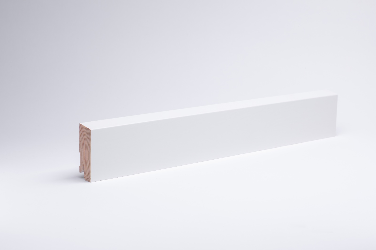 Massivholz Sockelleiste 60 mm abgeschrägt - Weiß - RAL 9010