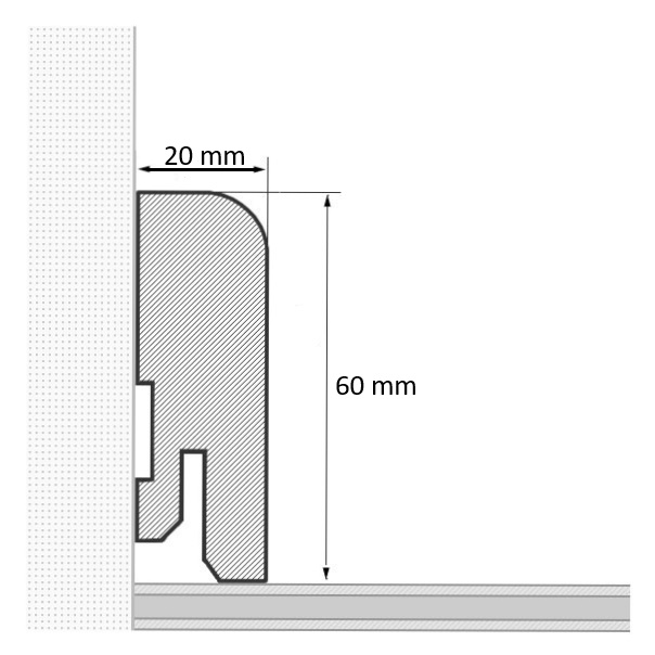 60 mm hohe Sockelleiste aus massivem Eichenholz mit abgerundeter Vorderkante. Gehobelt und geschliffen. Die Leisten werden aus einem Stück, wie der Stamm gewachsen ist, gearbeitet. Dadurch entsteht ein harmonisches Bild in der Holz- und Farbstruktur. Asteinschlüsse sind möglich.