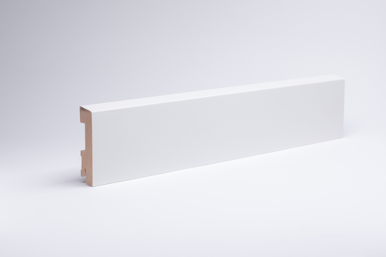 Massivholz-Sockelleiste abgeschrägt 80 mm - Weiß RAL 9010