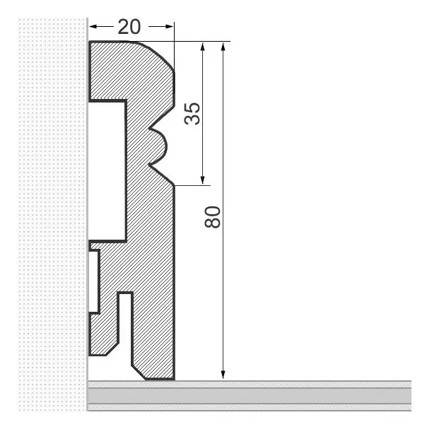 Alt-Reno Profilleisten zeichnen sich durch eine abgerundete Vorderkante und eine Tiefenfräsung aus. In den Abmaßen 80 mm x 20 mm x 2400 mm finden Sie hochwertige Alt-Reno Profilleisten jetzt zu günstigen Preisen in unserem Online-Shop für Fußleisten und mehr - Leiste24