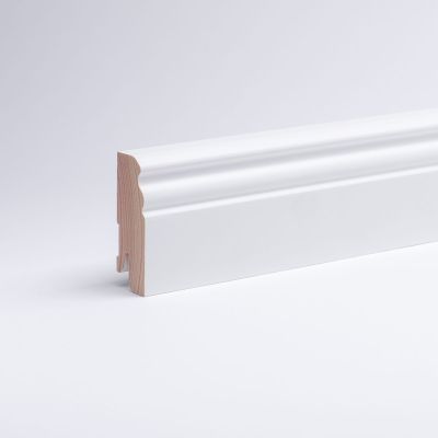 Erhältlich in unterschiedlichen Höhen von 40 mm bis 120 mm, passen sich unsere weiß lackierten Massivholz-Sockelleisten harmonisch in jede Raumgestaltung ein. Wählen Sie aus einer Vielzahl von Profilen, wie z.B. dem klassischen Berliner Profil oder der modernen Rundkante, und verleihen Sie Ihrem Wohnraum eine persönliche Note.
