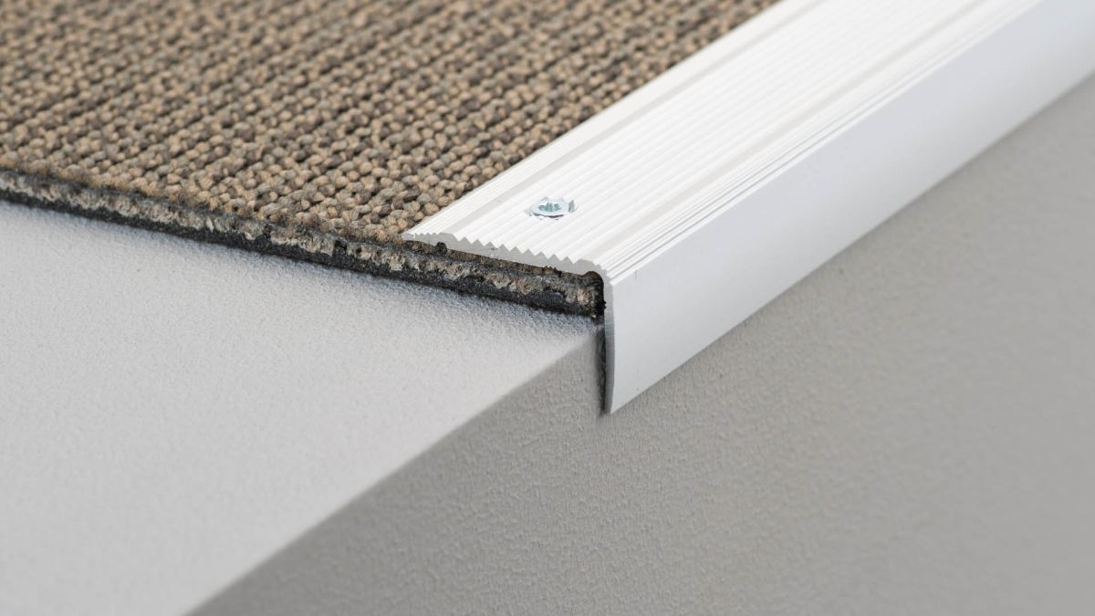 Das Treppenkantenprofil wird an Treppenabschlüssen, auf Stufen oder Podesten eingesetzt.