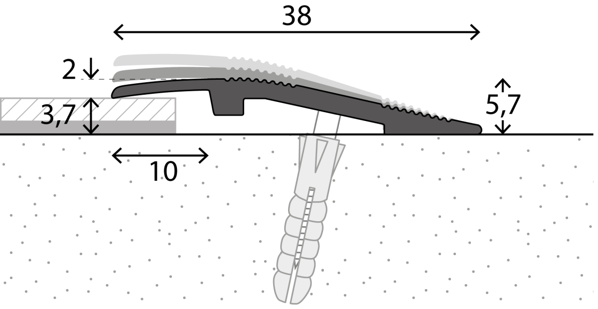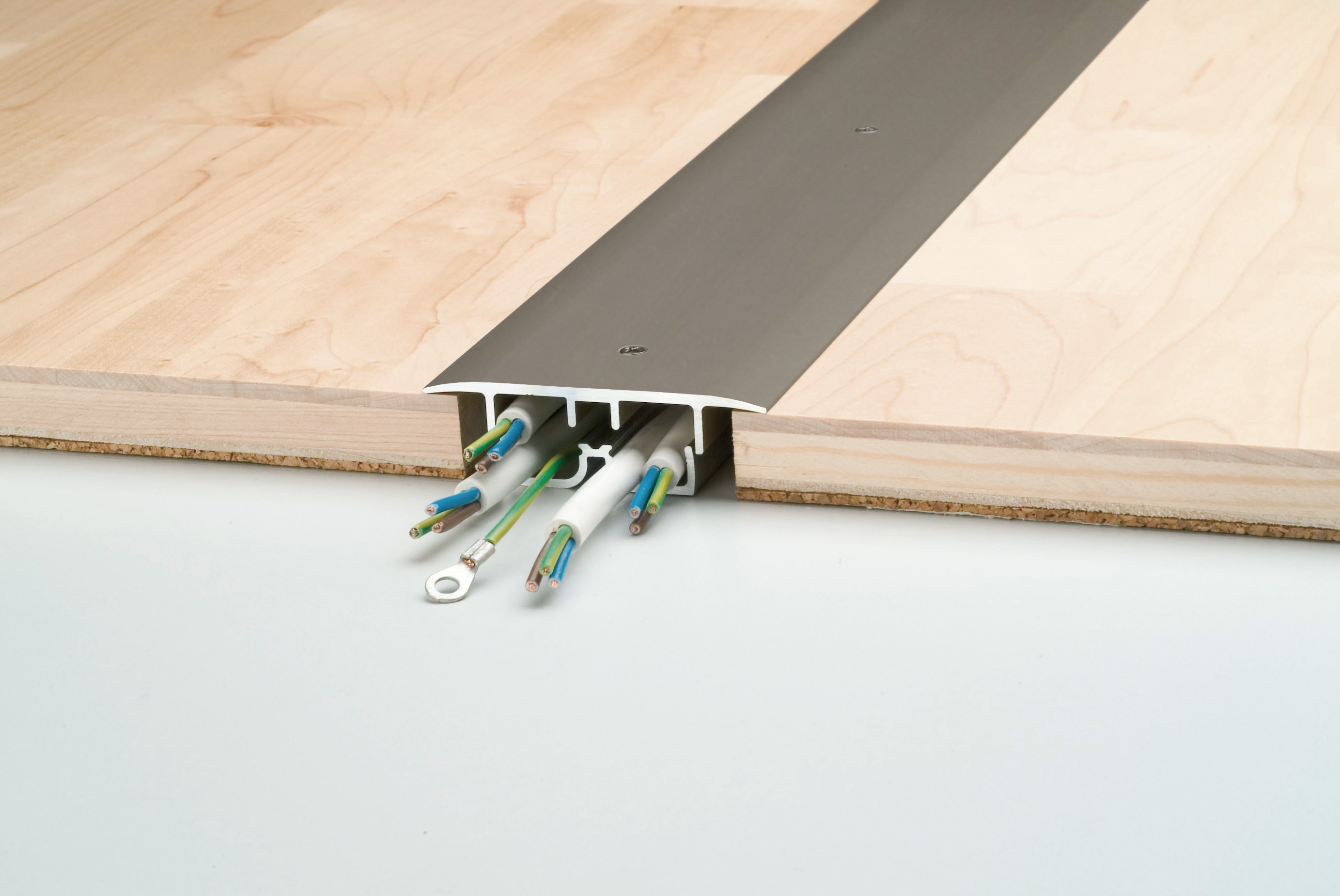 Übergangsprofil aus Aluminium mit integriertem Kabelkanal, in sehr langlebiger Profiqualität. Bestehend aus Unterprofil und Oberprofil zum Schrauben - für gleich hohe Übergänge oder zum Ausgleich von Höhenunterschieden bis 3 mm.
