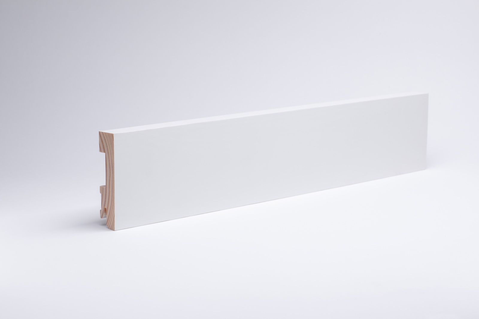 Vierkant Massivholz-Sockelleisten 80 mm - Weiß RAL 9010