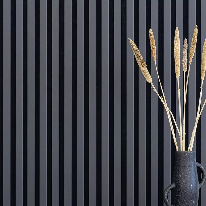 Optimiere deine Raumakustik mit unseren hochwertigen Akustikpaneelen mit schwarzem Filz. Diese Lamellenpaneele vereinen modernes Design mit effektiver Schalldämmung und verleihen jedem Raum eine edle Optik.