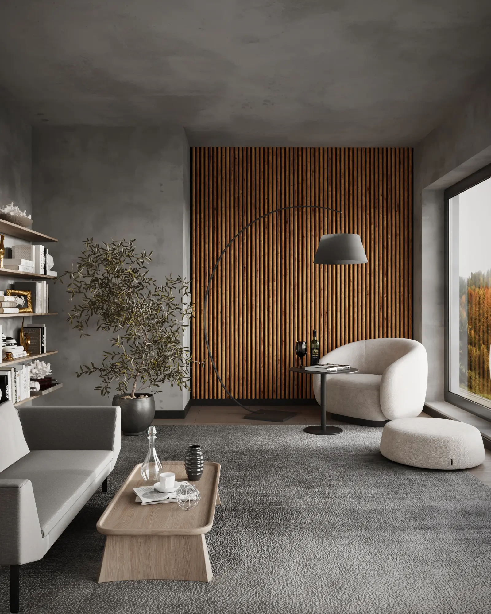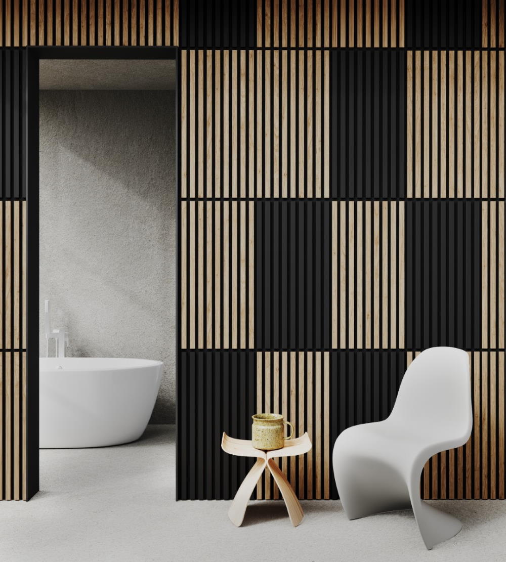 Die moderne Lamellenoptik sorgt für eine hochwertige, zeitlose Wandgestaltung.