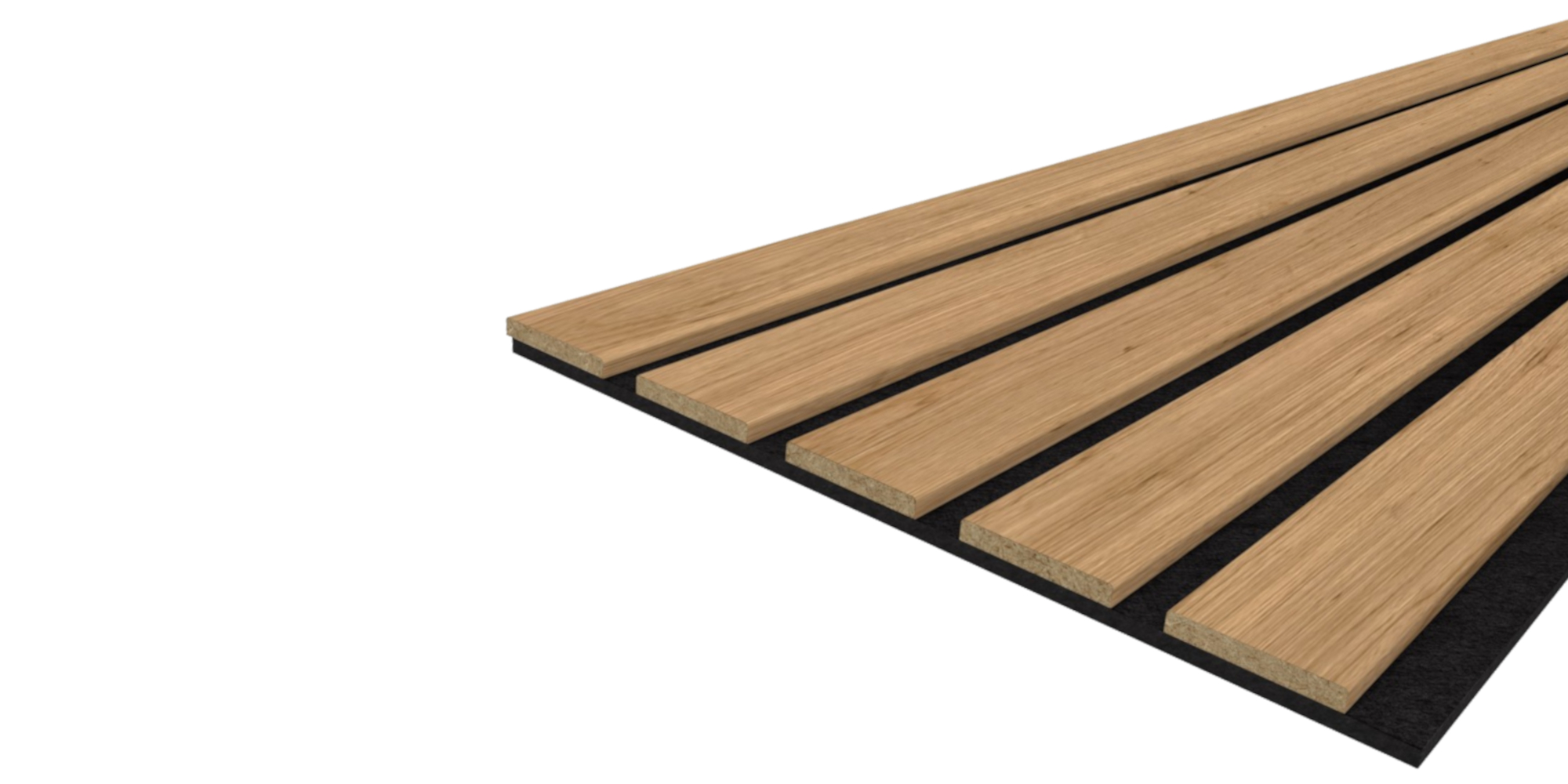 Acoustic+ Akustikpaneel 2600 x 400 mm Eiche Natur - Akustikfilz Schwarz Hochwertige Akustikpaneele mit CleanEdge-Technologie - keine sichtbaren Kanten, moderne Lamellenoptik und spürbar bessere Raumakustik Verleihen Sie Ihren Räumen mehr Tiefe, Struktur und Ruhe. Die Acoustic+ Akustikpaneele von Leiste24 verbinden moderne Lamellenoptik mit funktionaler Schalldämmung und hochwertiger Verarbeitung. Ideal als Wandverkleidung für Wohnräume, Büros, Flure oder gewerbliche Bereiche. CleanEdge-Technologie - der sichtbare Unterschied Voll ummantelte Lamellen ohne offene Schnittkanten Saubere, hochwertige Optik aus jedem Blickwinkel Deutlich edler als herkömmliche Akustikpaneele mit sichtbaren MDF-Kanten Warum Acoustic+ Akustikpaneele von Leiste24? Verbessern die Raumakustik spürbar Moderne Lamellenwand-Optik für mehr Tiefe und Struktur Einfache Montage durch Kleben oder Schrauben Hochwertige Verarbeitung für langlebige Wandlösungen Produktdetails Lamellen aus MDF mit Qualitäts-Dekorkaschierung in Eiche natur Maße: 2600 x 400 x 20 mm Filz: Schwarz (8 mm stark) Material: MDF Maße der Lamellen: 27 mm breit und 12 mm stark Abstände zwischen den Lamellen: 18 mm Wandpaneele komplett vormontiert Montage Die Lamellenverkleidung ist sehr schnell und einfach zu montieren. Entweder Sie kleben oder schrauben die Akustikpaneele an die Wand. Für die Decke empfehlen wir Kleben und Schrauben in Kombination. Die perfekte Kombination aus Design und Funktion für Räume, die nicht nur gut aussehen, sondern sich auch besser anfühlen.
