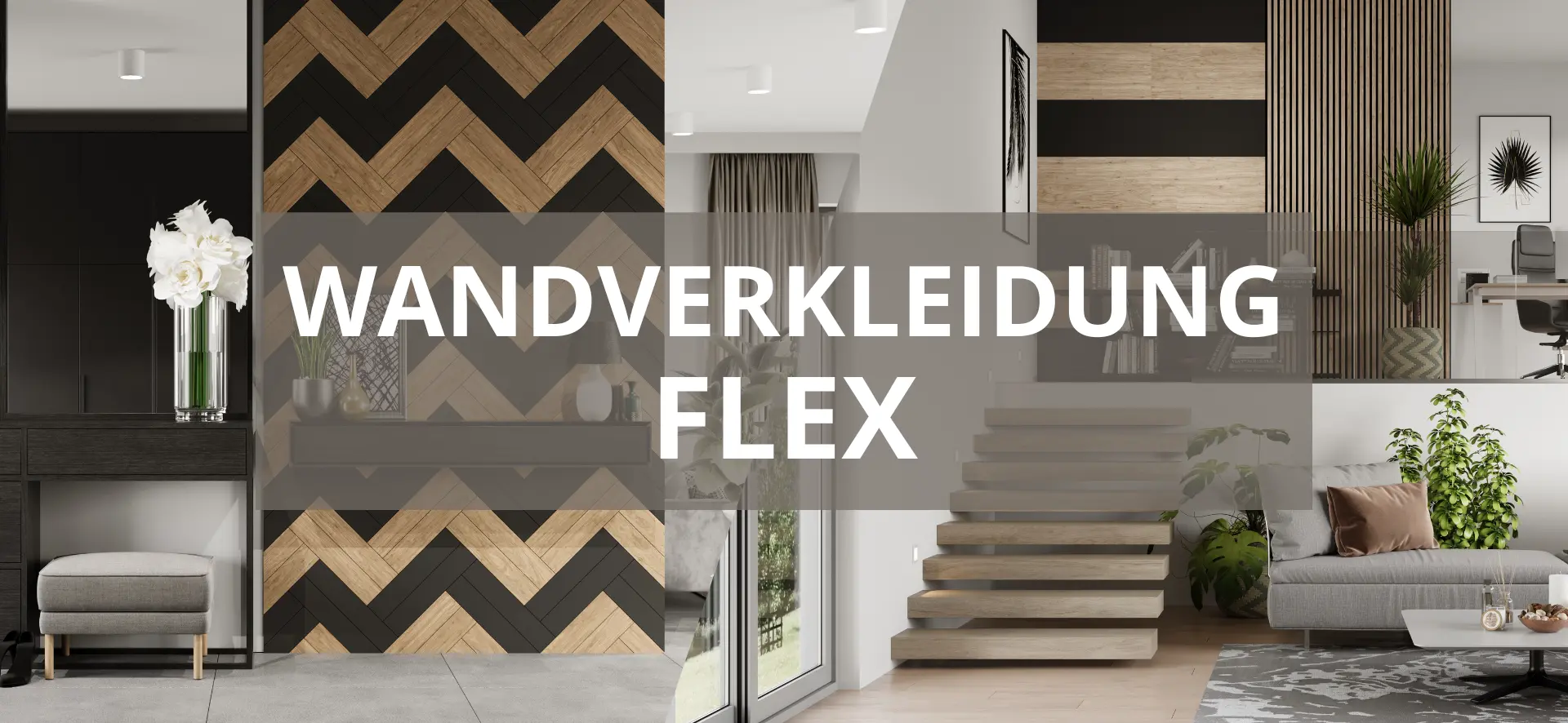 Ob Fischgrät, Pfeilspitze oder klassische Streifen die FLEX-Elemente lassen sich flexibel verlegen. Das Ergebnis: elegante, strukturierte Wandbilder, die Modernität und Präzision ausstrahlen.