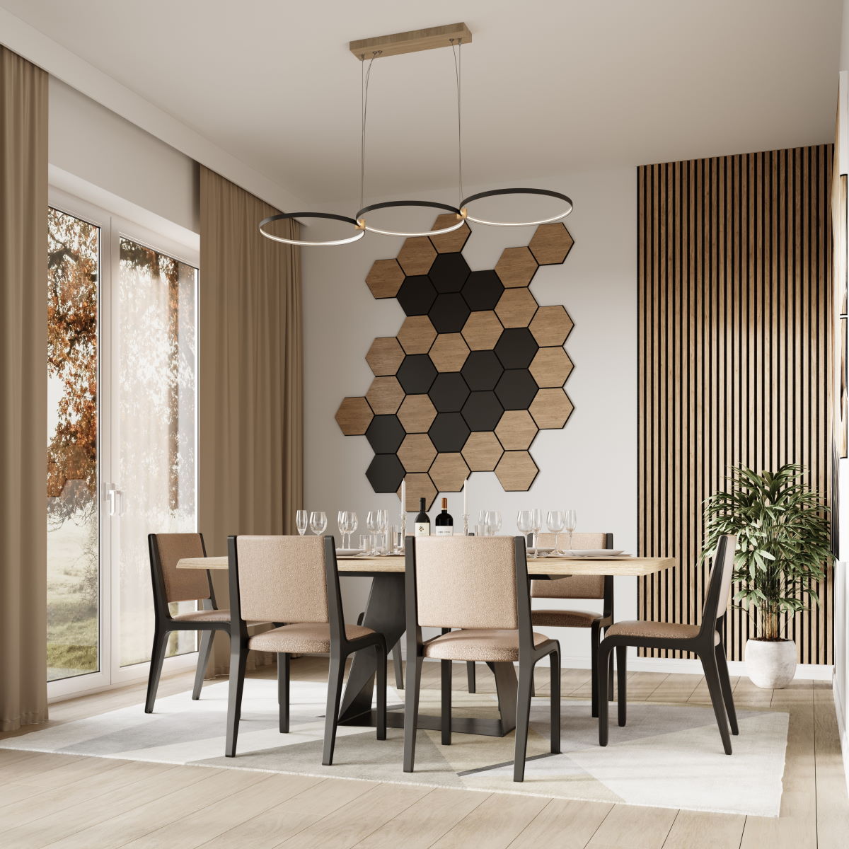 Modern, stilvoll und funktional - die perfekte Wandlösung für Ihr Zuhause!Setzen Sie mit der NANO Hexagon-Wandverkleidung in Eiche Rustikal außergewöhnliche Design-Akzente. Die präzise gearbeiteten hexagonalen Paneele bestehen aus hochwertigem MDF und Holzoptik mit einer eleganten Eichenoberfläche. Der schwarze Filz auf der Rückseite verbessert die Raumakustik und verleiht den Paneelen eine exklusive Optik.