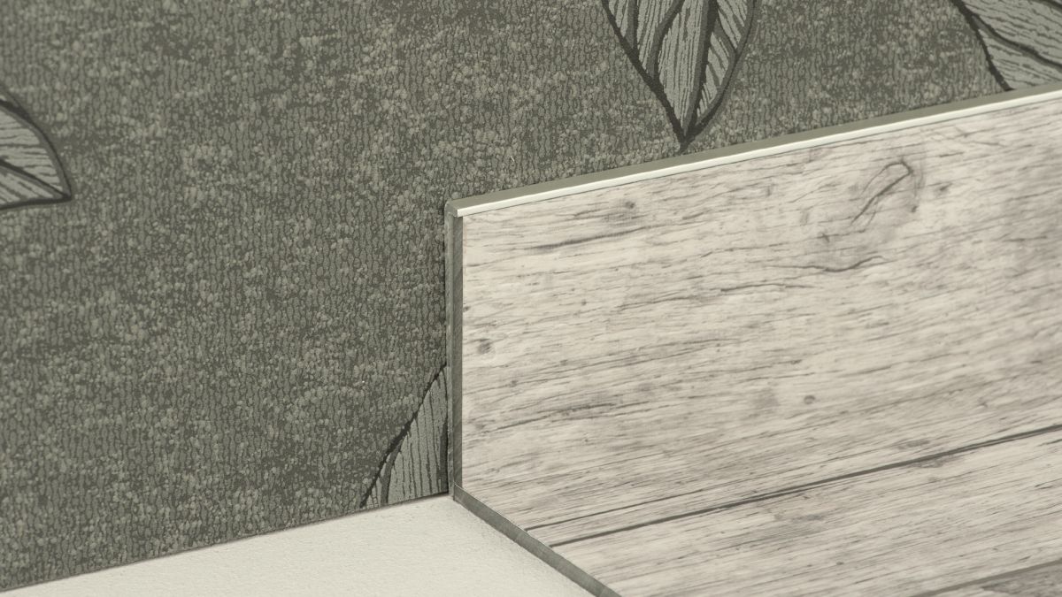 Die Leiste liegt dicht an der Wand an und überzeugt durch eine makellose Aluminium-Oberfläche. Mit dem kurzen Schenkel nach oben montiert werden aus ihnen dezente Einklebeleisten für Bodenbeläge mit Stärken bis 3,5 mm. So können aus dem verarbeiteten Bodenbelag Sockelleisten im identischen Dekor gestaltet und überschüssiges Material effizient genutzt werden.
