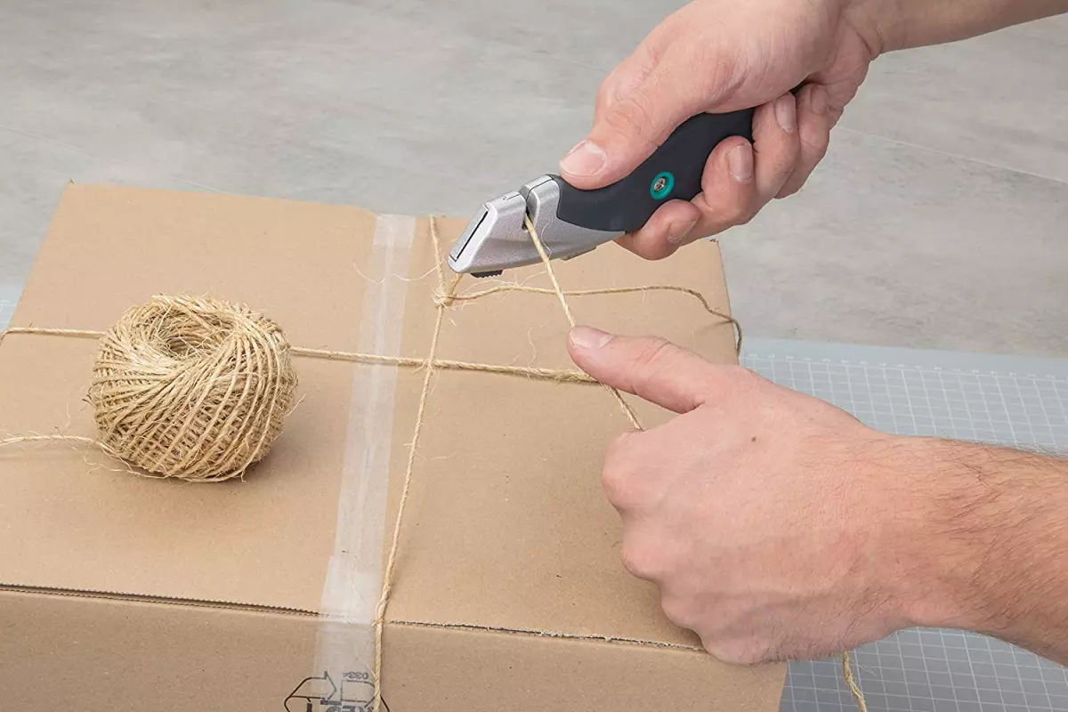 Dieser vielseitige Helfer für Heim- und Handwerk bietet mit der Sicherheits- und Autolockfunktion 2 verschiedene Klingeneinstellungen. Mit der Sicherheitsfunktion fährt die Klinge automatisch zurück in das Gehäuse, sobald der Schieber losgelassen wird, bei aktivierter Autolockfunktion bleibt die Klinge stehen. So kann für jede Anwendung die optimale Einstellung gewählt werden und der Anwender benötigt nur noch ein Tool für viele unterschiedliche Einsatzbereiche.Zum sicheren und schnellen Schneiden von Schnüren und Kordeln ist eine separate Schneidzone verfügbar. Über die Nische kann das zu schneidende Band unter Spannung sicher an die Klinge geführt werden.